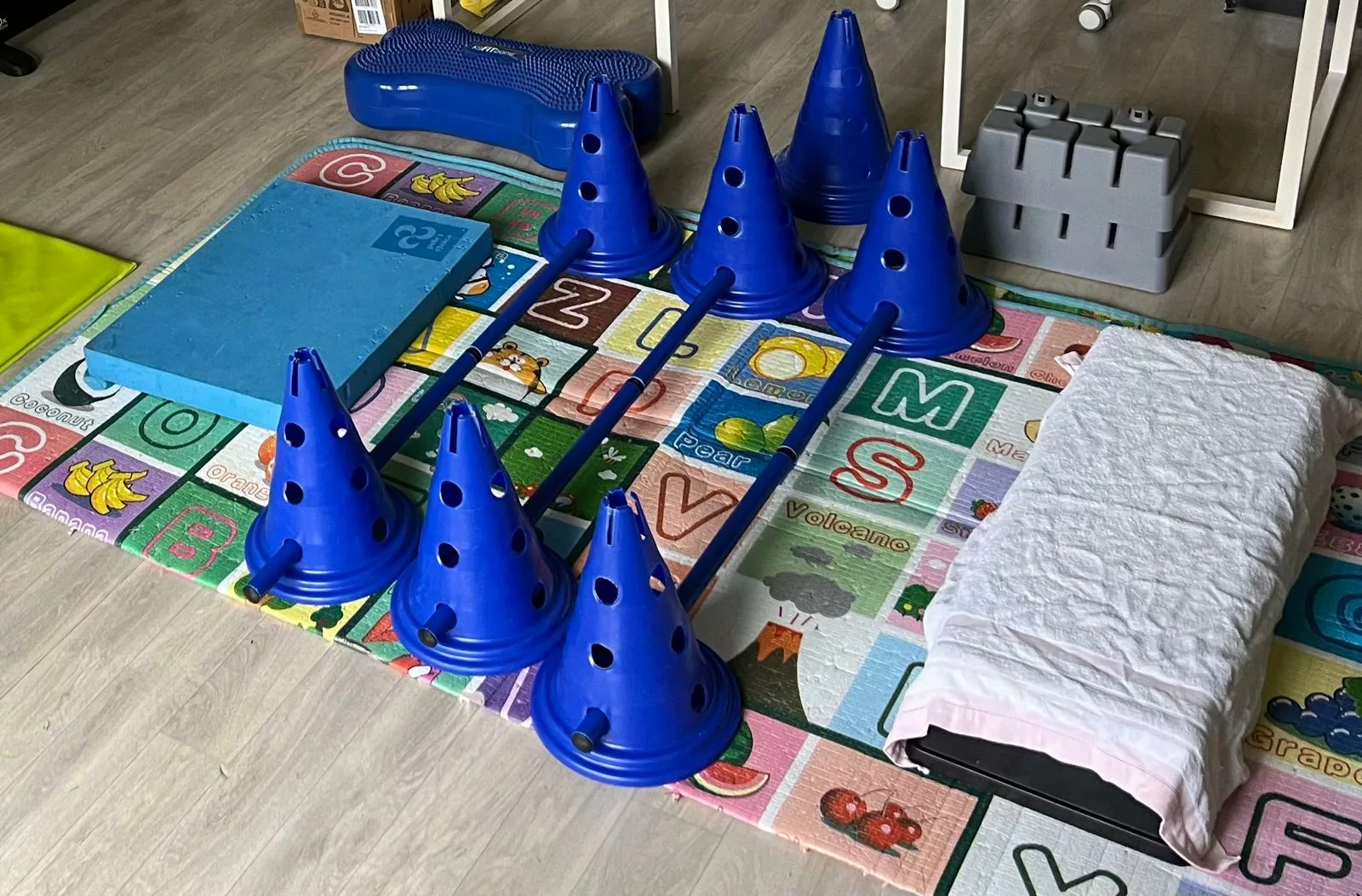 Le mouvement et le renforcement musculaire sont primordiaux en rééducation. C’est pourquoi j’utilise également du matériel d’exercice comme des coussins d’équilibre, un step ou des barres au sol par exemple. Ces outils permettent de travailler la coordination, la proprioception, la tonicité musculaire et la mobilité articulaire de votre chien. Je peux être très inventive avec le matériel que j’utilise donc ne soyez pas surpris.